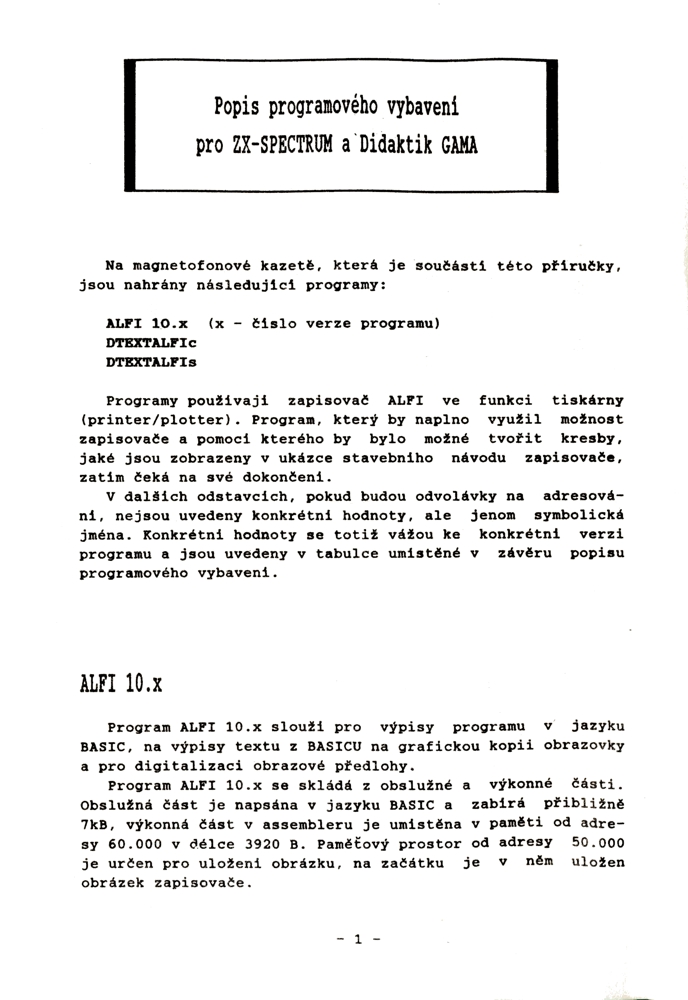 Strana 1 přílohy pro ZX spectrum pro Alfi