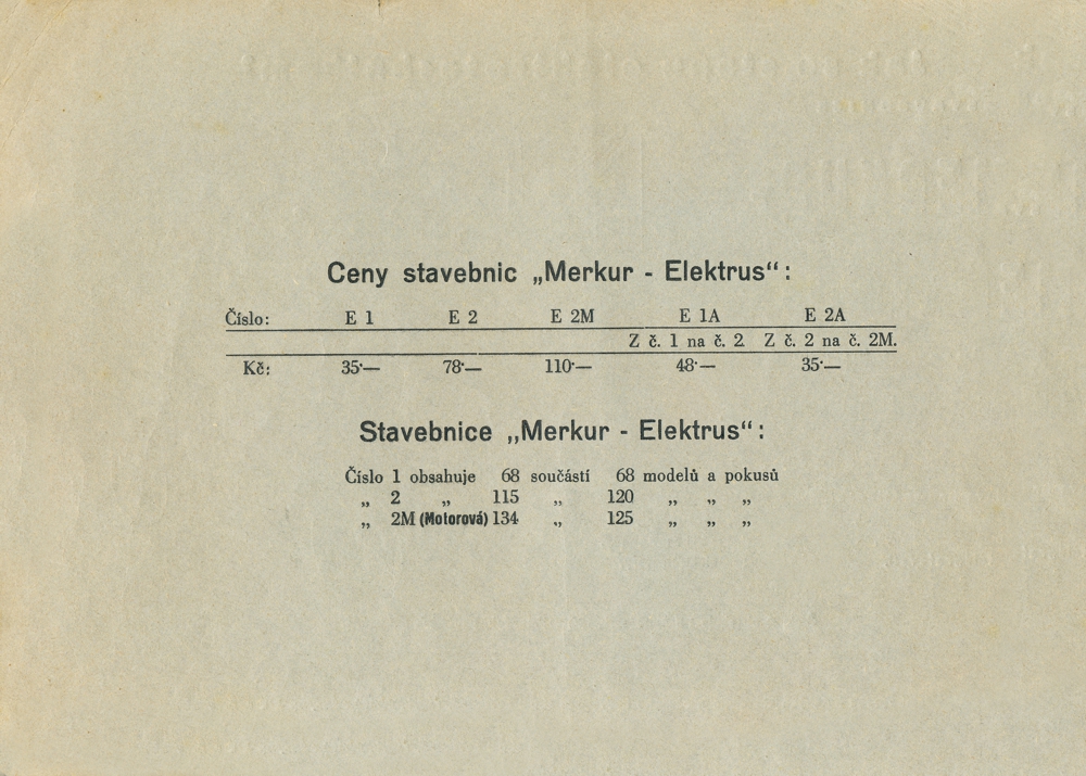 Vnitřní strana obalu předlohy Merkur Elektrus z roku cca 1935