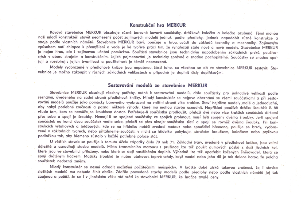 Strana 1 předlohy Merkur z roku cca 1955