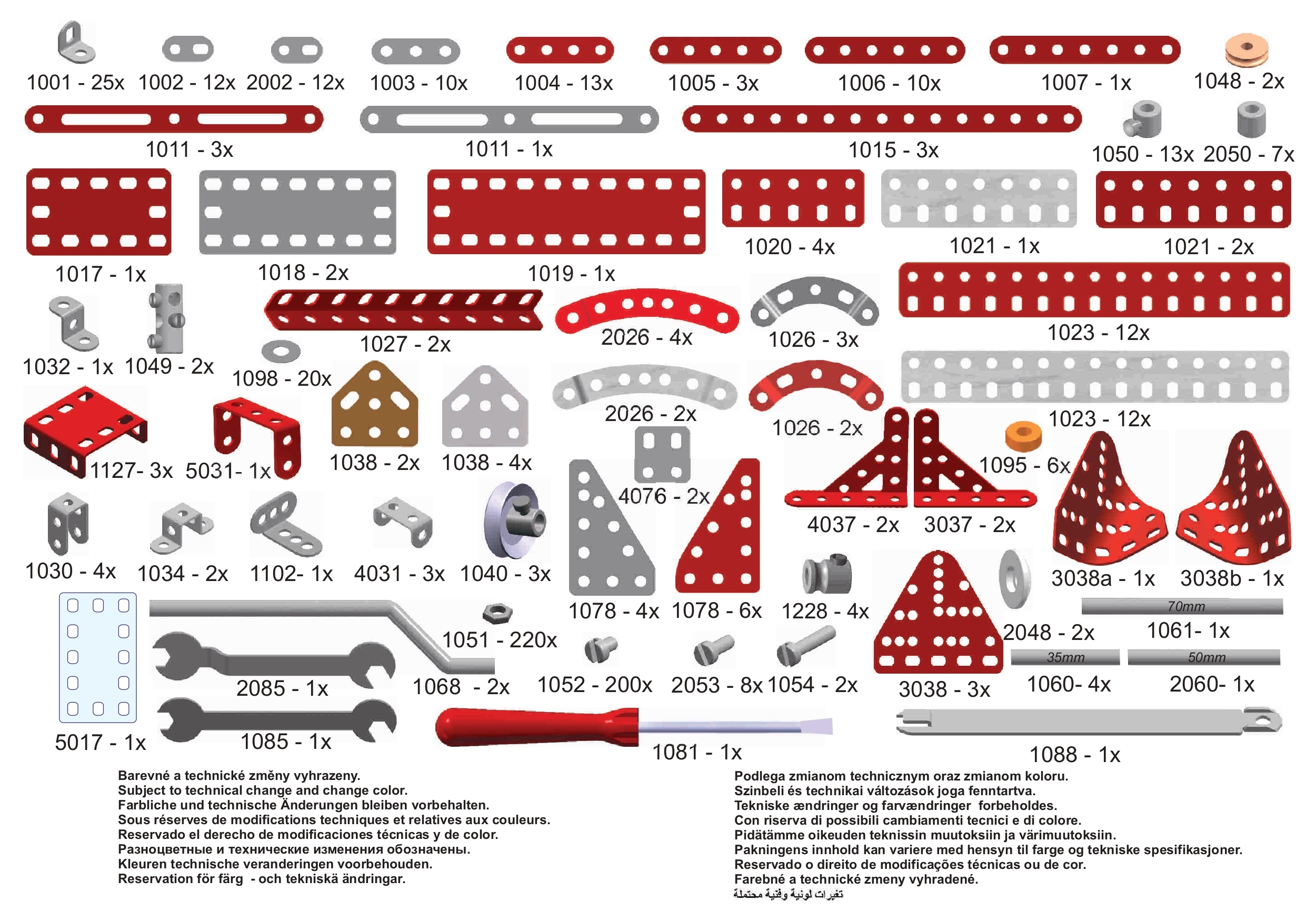 Seznam součástek z předlohy pro